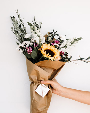 いつも花を届けてくれるフラワーアテンドへ、日ごろの感謝の気持ちをこめてささやかながらお花のプレゼントをお渡しします。