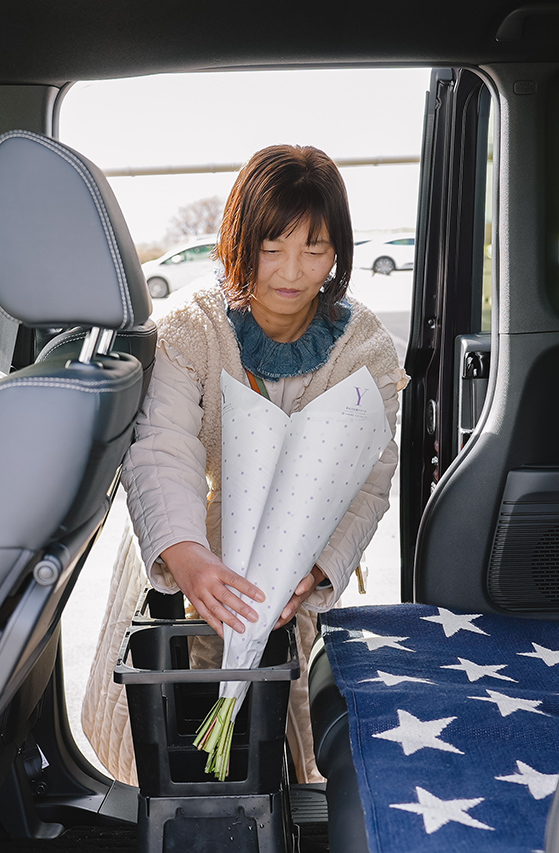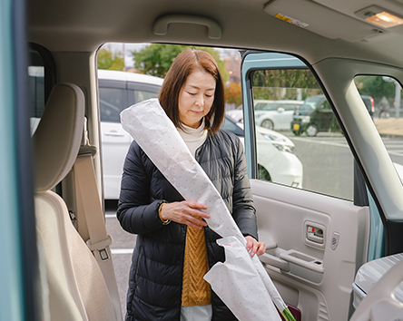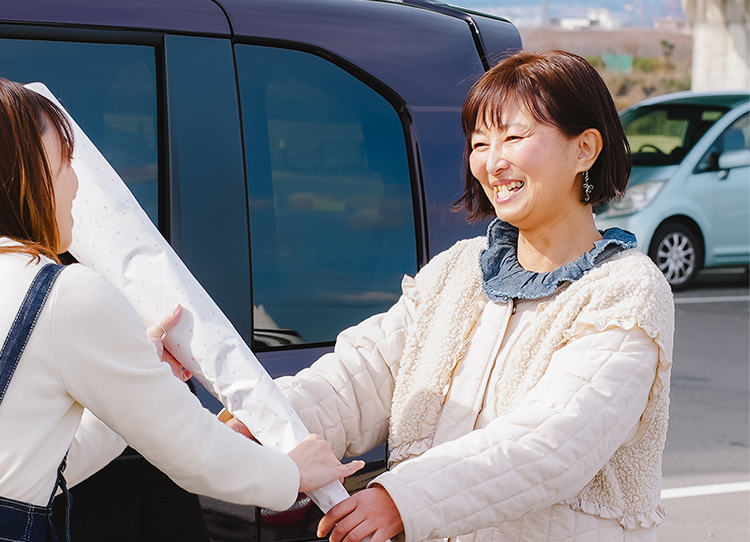 一人で車に乗るので、気楽に働けています。今日は9時から始めよう、別の日では家事が早く終わったんで8時半から出発しようなど、自分でスタートを決めれるのがとても有難く思っています。お客様からお花の感想や私の体調まで気遣っていただけて、配達を続けていてよかったなといつも感じています。